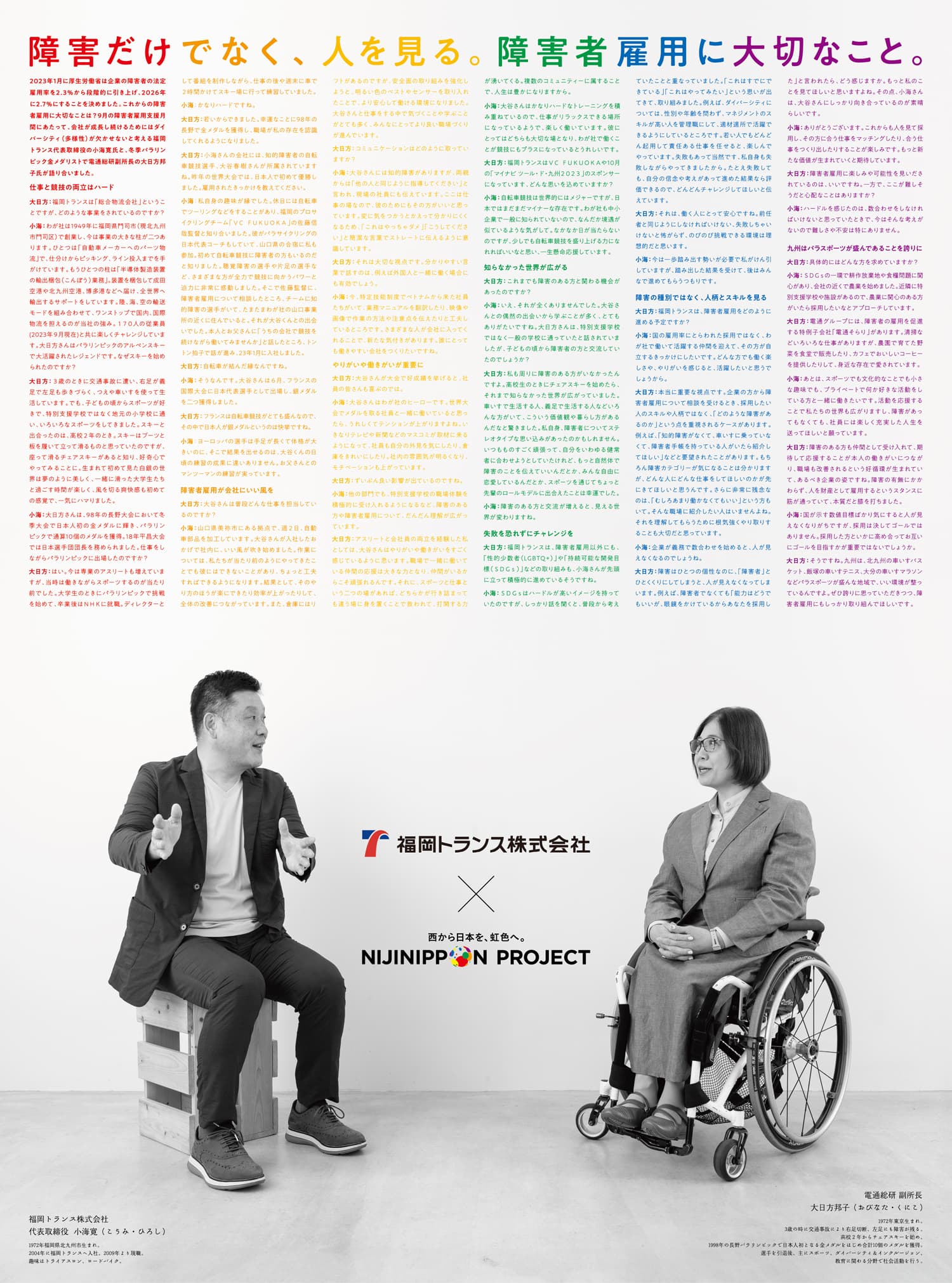 2023年1月に厚生労働省は企業の障害者の法定雇用率を2.3%から段階的に引き上げ、2026年に2.7%にすることを決めました。これからの障害者雇用に大切なことは?9月の障害者雇用支援月間にあたって、会社が成長し続けるためにはダイバーシティ(多様性)が欠かせないと考える福岡トランス代表取締役の小海寛氏と、冬季パラリンピック金メダリストで電通総研副所長の大日方邦子氏が語り合いました。